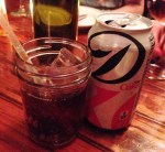 Walking through the main dining area I took note of the quirky and very random decor, which included long strands of Christmas lights strung along the walls. It almost looked like an assortment of mismatched tag sale gems that somehow came together, worked in the space and were able to create a hip but very warm environment. The seating arrangement is nothing fancy either. Simple picnic tables with benches, no table cloths, paper napkins and sodas served in recycled jam jars (Note: There are no backs on the benches so be prepared to engage those muscles in your back. … and test your posture). The patio area with the bar is very cool. The bar set up and decor is as creative as the main restaurant’s interior. Cocktail menus written on the walls on colorful chalkboards that are illuminated by more obscure neon lighting. There were even a few token pumpkins atop the bar as an added festive touch. Everybody out there seemed to be enjoying themselves – no matter how long they had been waiting for a table – and it was a completely different vibe from the hustle-and-bustle of inside. Also, over the fencing is a full garden where Roberta’s grows some of its vegetables, herbs, etc. There was a private event back there on Friday so I did not get to sneak a peak for myself, but it’s no wonder the greens tasted so fresh