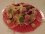 Menu highlights: There was so much on this menu I wanted to try. … and many recommendations I received beforehand. For starters, the Carciofini Fritti were delicious – lightly fried artichokes with a hint of lemon. I also enjoyed the fluke crudo as well as a selection of the house meats and cheeses. I suggest keeping it light on the appetizers because the rest of your meal will be sure to fill you up quickly. On the entrees, I veered in the pasta direction. Upon the wise guidance of my server I ordered the Malfatti, and it was delicious. Thick noodles – similar almost to a Papardelle – in a rich sauce of braised suckling pig and garnished with arugula. The Fettuccine alla Bolognese was also a table favorite. Lastly, the Tartufo won the dessert award. Shaved chocolate shavings encased the rich chocolate ice cream and a sour cherry surprise to top it off.