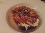 Macaroni, Macaroni! This is no Kraft or Velveeta. … these pastas are far more impressive. There are many options, but I received a lot of menu guidance from friends before going to Carbone and every single person said Spicy Rigatoni Vodka. At first I thought this was too simple. Can’t you get any more original about what is considered the best pasta on the menu? And maybe it’s not THE best. … after all it’s the only one I got to try. … but it was a pretty tasty vodka. First of all, the portion was not overwhelming. Second of all, the sauce was used sparingly. This was no Penne alla Vodka with a sauce that is so thick it’s hard to muster up the energy to consume more than three bites. Carbone’s sauce used just enough cream and the spicy kick really makes the dish come alive. My mouth was a little bit on fire (I am more sensitive to spice than many people), but I think that’s what kept me coming back for more. All the pasta dishes are portioned as a middle courses and, therefore, your meal is not overwhelmed by carbs and you have room in your stomach for the rest of the menu. To round out the meal we went with something off the Carni section. Our server did recommend a number of the Pesci dishes, including the Shrimp Su’modo, but we went with the meat after seeing so much of it floating around us. Now, I am not a beef eater so we did not get to follow up with friendly pre-dinner advice regarding the Veal Parmesan. The table next to us – yes, the same one with the Caprese- got it though and it looked damn good. Huge piece of pounded and breaded meat topped with sauce and plenty of mozzarella. I almost went for it. …almost. In an attempt to not overwhelm ourselves at the end of our meal we kept it simple with Chicken Scarpariello. A classic with plenty of flavor and served with very tender white and dark meat, but it wasn’t necessarily the highlight of the meal. A good way to finish and not over-stuff ourselves.