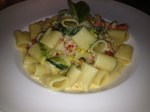Menu highlights: There was so much on this menu I wanted to try. … and many recommendations I received beforehand. For starters, the Carciofini Fritti were delicious – lightly fried artichokes with a hint of lemon. I also enjoyed the fluke crudo as well as a selection of the house meats and cheeses. I suggest keeping it light on the appetizers because the rest of your meal will be sure to fill you up quickly. On the entrees, I veered in the pasta direction. Upon the wise guidance of my server I ordered the Malfatti, and it was delicious. Thick noodles – similar almost to a Papardelle – in a rich sauce of braised suckling pig and garnished with arugula. The Fettuccine alla Bolognese was also a table favorite. Lastly, the Tartufo won the dessert award. Shaved chocolate shavings encased the rich chocolate ice cream and a sour cherry surprise to top it off.
